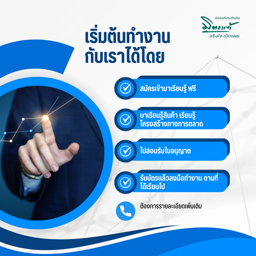 หากคุณสนใจและต้องการข้อมูลเพิ่มเติมเกี่ยวกับโอกาสในการเป็นตัวแทนนายหน้าออนไลน์กับมิตรแท้ประกันภัย โปรดติดต่อเราทันที