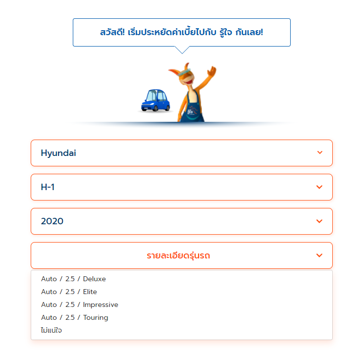 เข้าเช็คราคาประกันภัยรถยนต์ ฮุนได HYUNDAI ง่ายๆ ด้วยตัวเองทราบเบี้ยทันที ด้วยขั้นตอนเพียงนิดเดียวออกเเบบราคาด้วยตัวเอง เพื่อเบี้ยประกันภัยที่ถูก ได้ราคาดีที่สุดประหยัด เลือกความคุ้มครองด้วยตัวเอง กับผู้ให้บริการ บริษัท รู้ใจประกันภัย